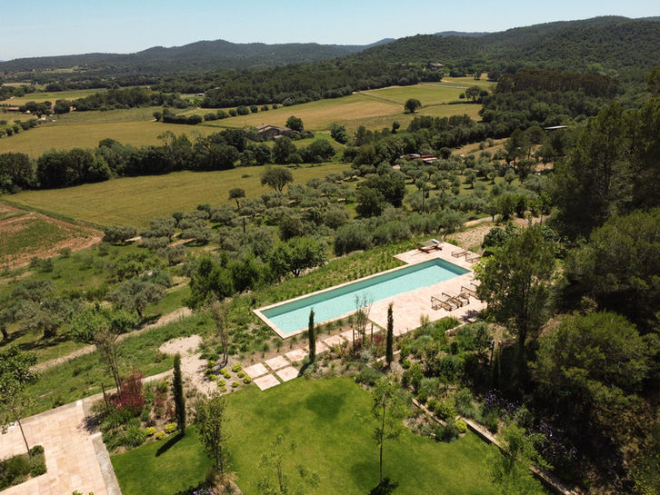 Located on the outskirts of the medieval village of Fonteta and beside the protected natural area of Les Gavarres, the property is accessed via a picturesque hillside approach that enhances its sense of seclusion and exclusivity. The masia has been carefully restored to become a high-end contemporary home, preserving the rustic character of the original building. Fully equipped to provide maximum comfort, it offers spacious and light-filled communal areas, including a large main living room connected to the dining area and kitchen, a TV lounge/library, games room and wine cellar. Many of the rooms feature large floor-to-ceiling windows that connect the interior with the garden and the surrounding natural landscape. The house offers five generous en-suite bedrooms, all with private bathrooms and views over the countryside. The outdoor areas include a landscaped garden arranged into different zones, a 19-metre swimming pool with panoramic views and sun loungers, a covered porch with outdoor dining and chill-out area, a multi-purpose court for volleyball or badminton, a pétanque area, a basketball hoop and a premium charcoal barbecue for outdoor cooking. Set within an outstanding natural environment, the property is ideal for walking and electric bike routes, while also offering quick access to La Bisbal d’Empordà, the county town renowned for its ceramic tradition and gastronomy, and to some of the most beautiful beaches on the Costa Brava.