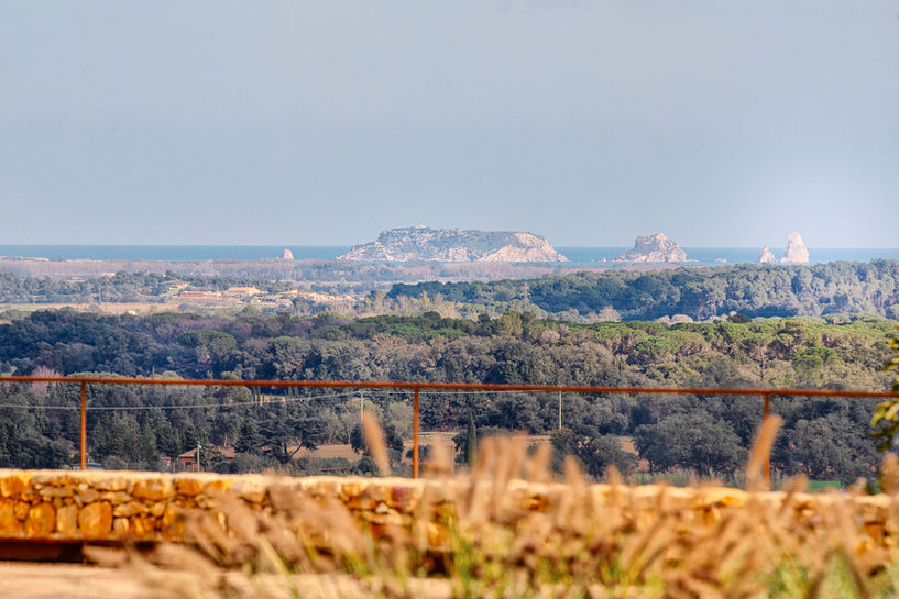 Spectacular masia set on top of a small hill, offering open views across the region with the sea on the horizon, surrounded by fields and woodland that guarantee complete privacy and tranquillity.
