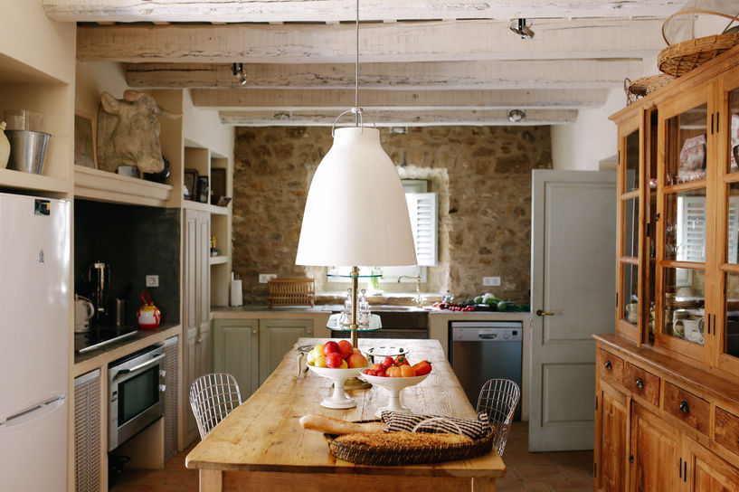 La Higuera es un punto de reunión de una gran familia y de encuentros de gente amiga de todas las latitudes. Un lugar donde disfrutar de un entorno privilegiado y del placentero estilo de vida mediterráneo. Ubicada en el pequeño y tranquilo pueblo de Sant Iscle d'Empordà, La Higuera se rehizo de dos antiguas casas del pueblo. Conserva las fachadas de piedra con ventanas góticas y los antiguos huertos desde donde disfrutar de unas bonitas vistas panorámicas con los Pirineos de fondo. Cuenta con un acogedor y cuidado jardín. El porche y las terrazas que recorren la fachada acogen desde una pequeña fuente a una zona de estar y comer, además de la famosa higuera que le da nombre a la casa. También encontramos una balsa que invita a refrescarse en verano. La casa cuenta con cinco amplios cuartos, todos con baño propio. Cada habitación cuenta una historia y ofrece una vista diferente, la decoración varía en cada una de ellas, creando diferentes atmósferas / ambientes. Un gran espacio comunicado al porche por tres huecos y rematado por dos chimeneas en sus extremos, constituye las áreas de salón y la biblioteca con mesa de trabajo y una zona con dos mesas redondas para ocho y seis personas A continuación, una cristalera da paso a la gran y rústica cocina y otorga continuidad y modernidad a esta área La Higuera es una casa para los amantes de los pequeños detalles, la decoración y la tranquilidad.